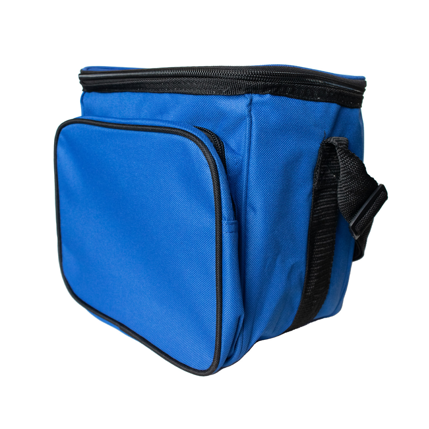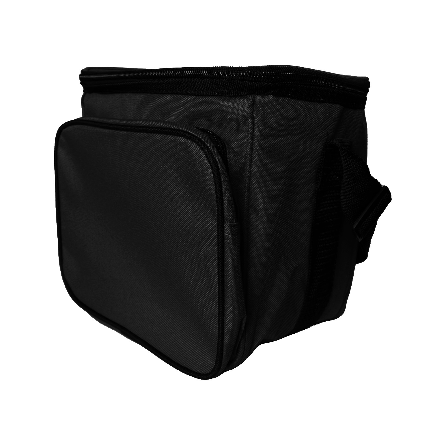 This Basic Cooler Bag is measuring 9 (W) x 9 (H) x 8 (D) inches in size. Made of 600 D Polyester material, and features heat-sealed, leakproof clear vinyl metallic liner, an outside dry pocket, adjustable shoulder strap. It can hold up to six cans.