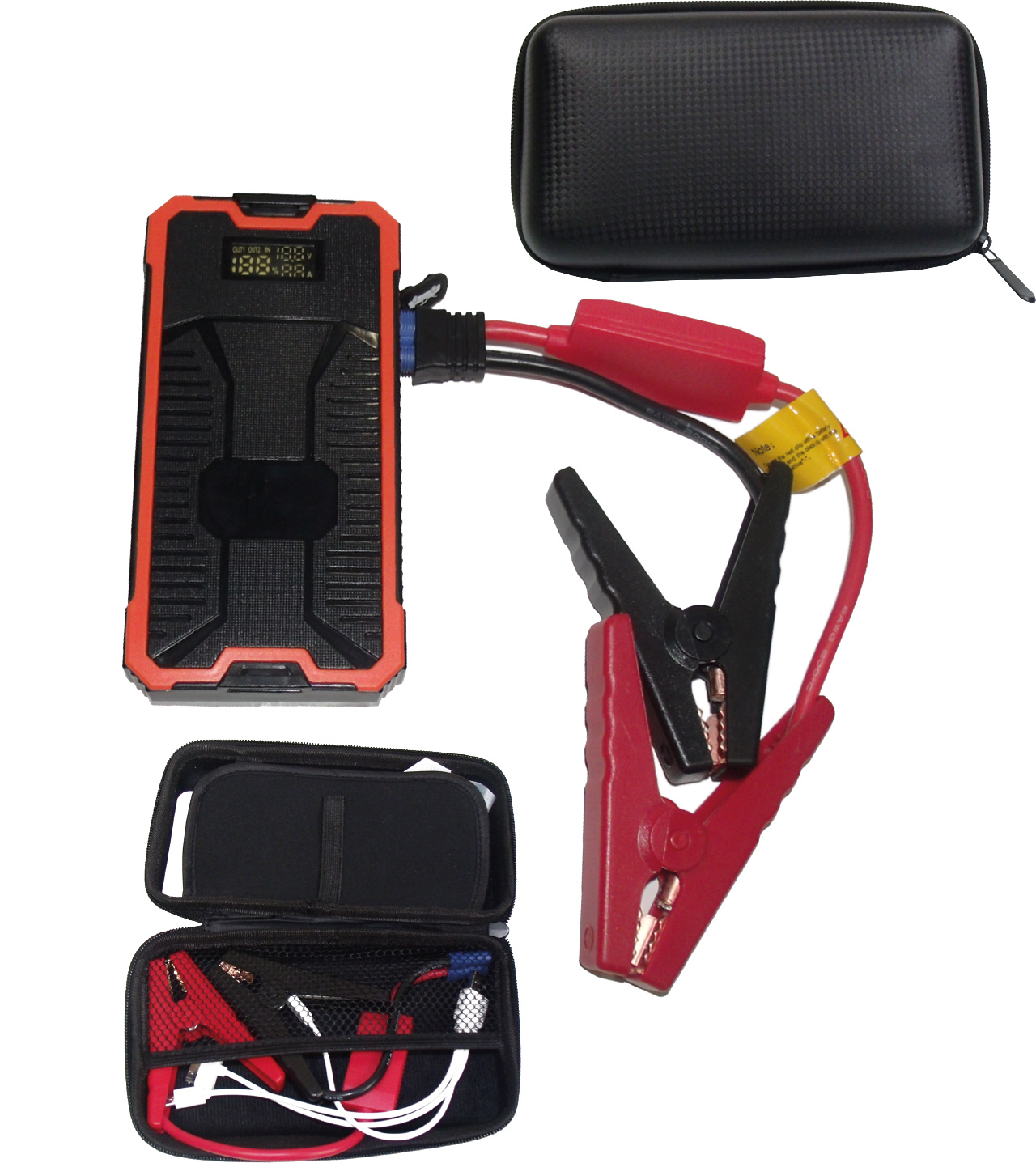 Portable Car Jump Starter. This high-quality premium product is durable, measuring 3 (W) x 6.25 (H) inches in size, and has an ABS plastic shell material with a TPU case. Features real-time display of your charging power, LED flashlight and has battery capacities of 10000 to 14000 mAh. Certification: CE, FCC, ROHS, UL. Perfect for all your car battery charging and Mobile battery charging needs, manual included.