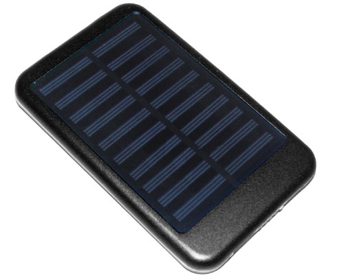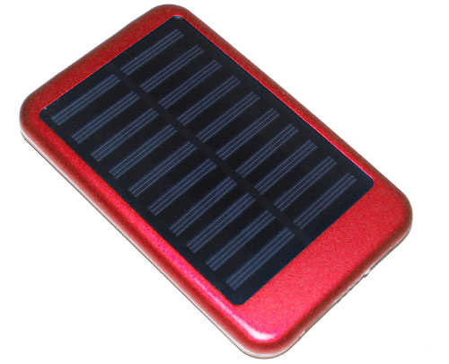 Solar Power Bank. Measuring 122 x 76 x 17 mm in size, made of plastic material, and has a battery capacity of 3000mAh. Devices Supported: All Mobile Phones, Tablet PC, MP3 players, Digital Cameras, and more.