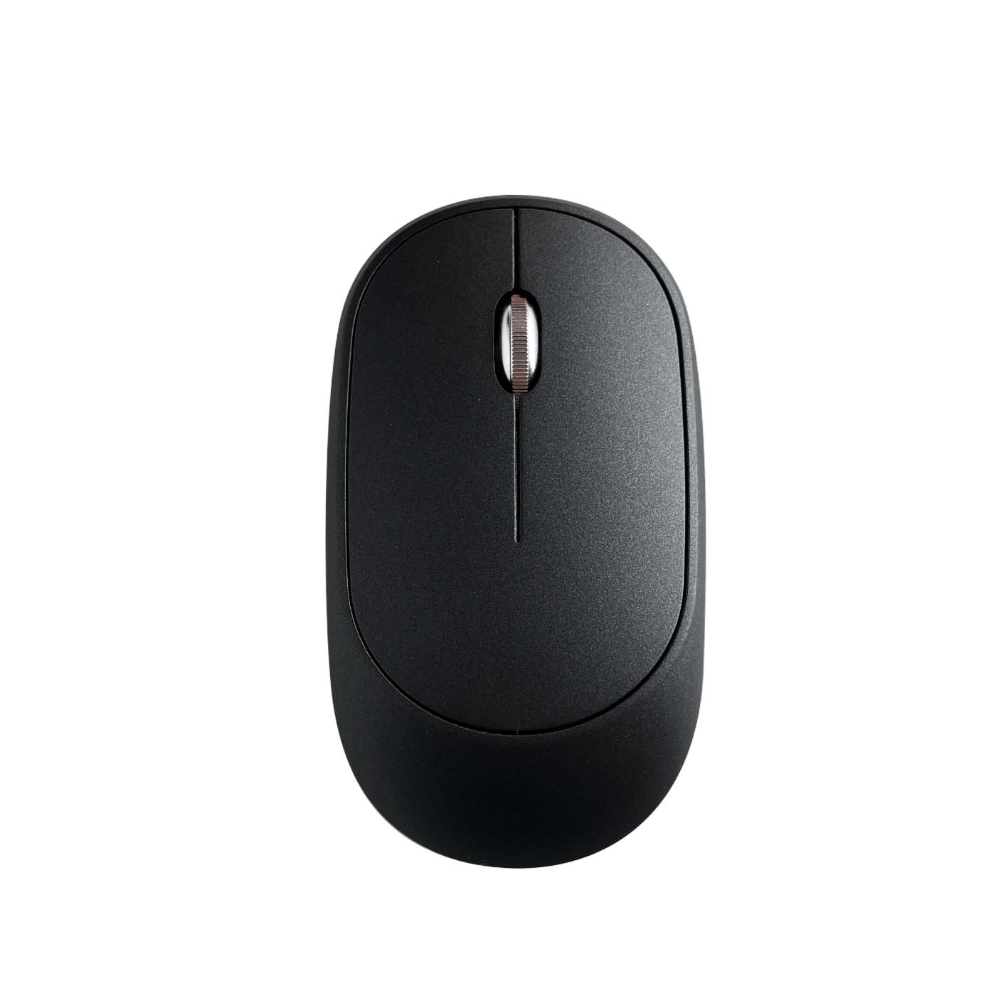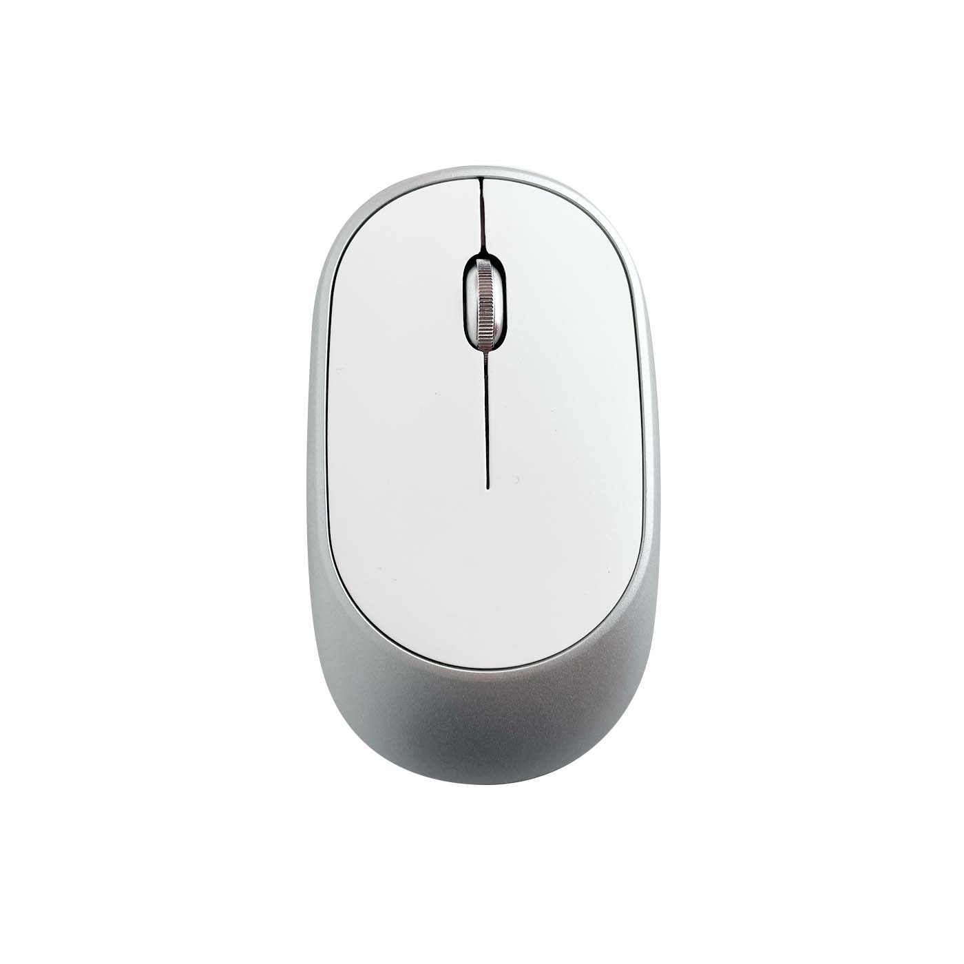 Rechargeable Bluetooth mouse with beautiful two-tone colour design made from ABS Plastic and measuring 4.25"(W) X 2.32(H) " X 0.9"(D). Features Soft Click silent design to minimize distractions in office settings. Includes USB wireless adapter and charging cable. Range extends to 15M. Compatible with Mac, Windows and Linux.