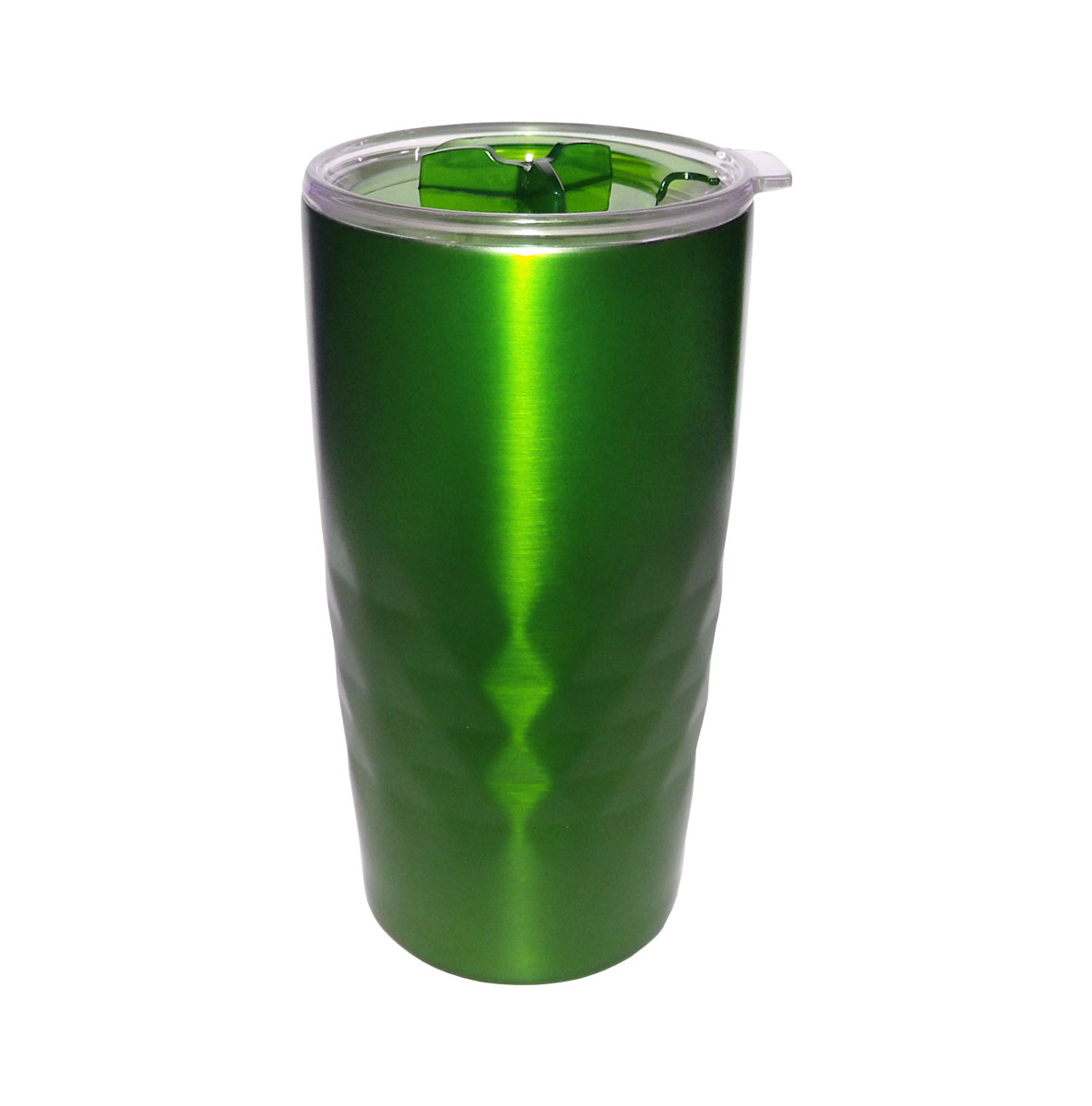 Classy 20 oz Tumbler; measuring 6.75 (H) x 3.5 (D) inches in size, and made of double-wall insulated stainless steel material. The double-walled vacuum insulation helps keep hot beverages for up to 5 hours. It features a clear Acrylic snap-on straw lid with matching colored Plastic twisting closure and a sipper hole for drinking, straw included. This high-quality tumbler is BPA free, FDA certified. It makes a perfect business gift idea.