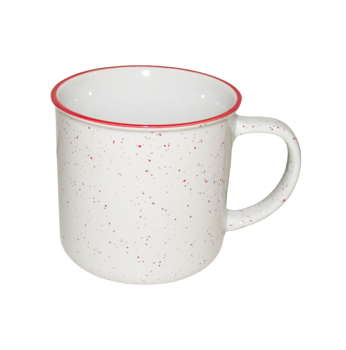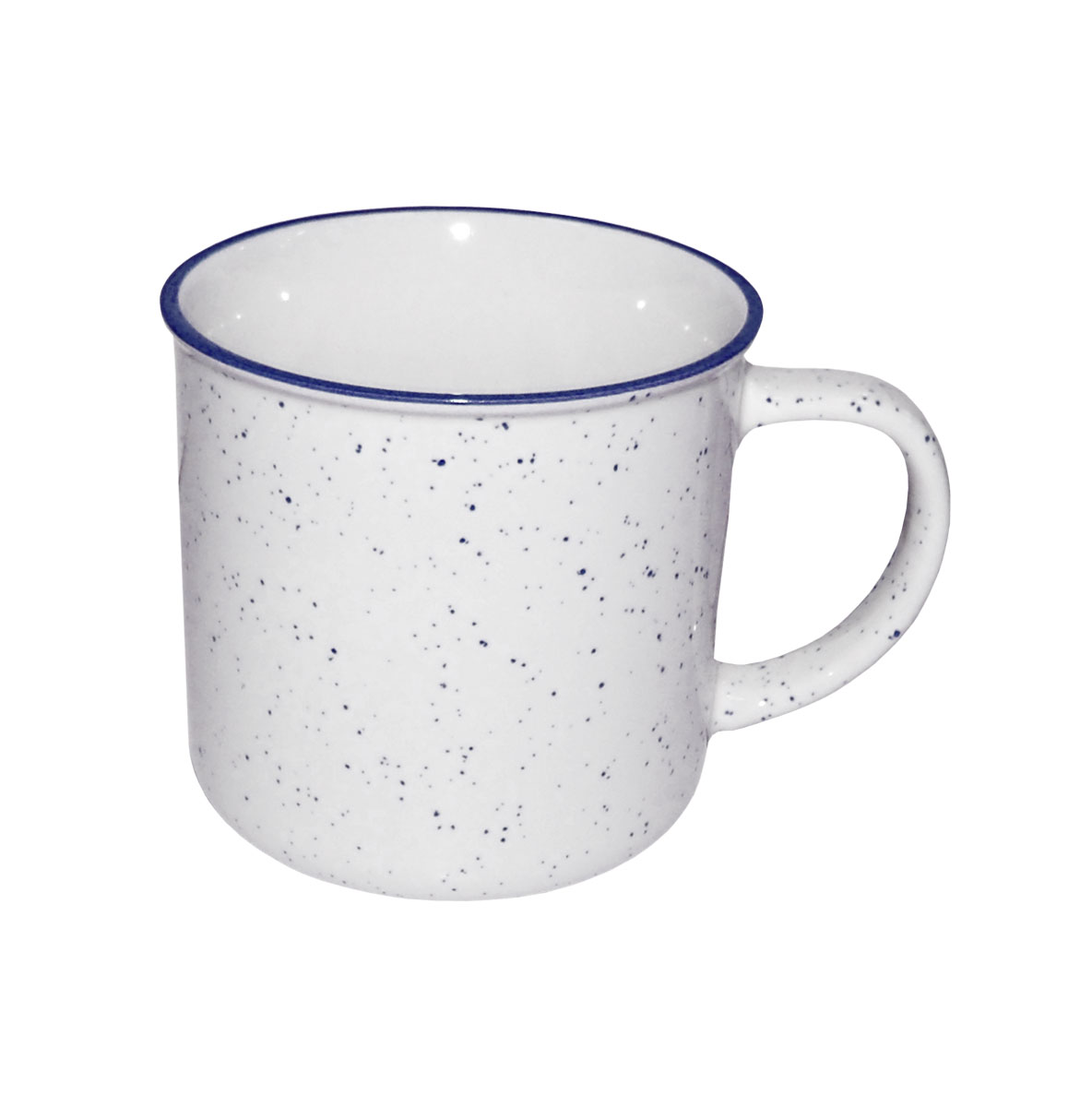 The Vacay 12 oz Mug. Measuring 3.37 (H) x 3.5 (D) inches in size, and made of Stoneware material. It features a ā€˜C’ shaped handle with a white glossy exterior finish and matching colored sparkles and rim. This high-quality mug is FDA certified, and it is microwave safe. It makes a perfect business gift idea. Hand wash recommended.