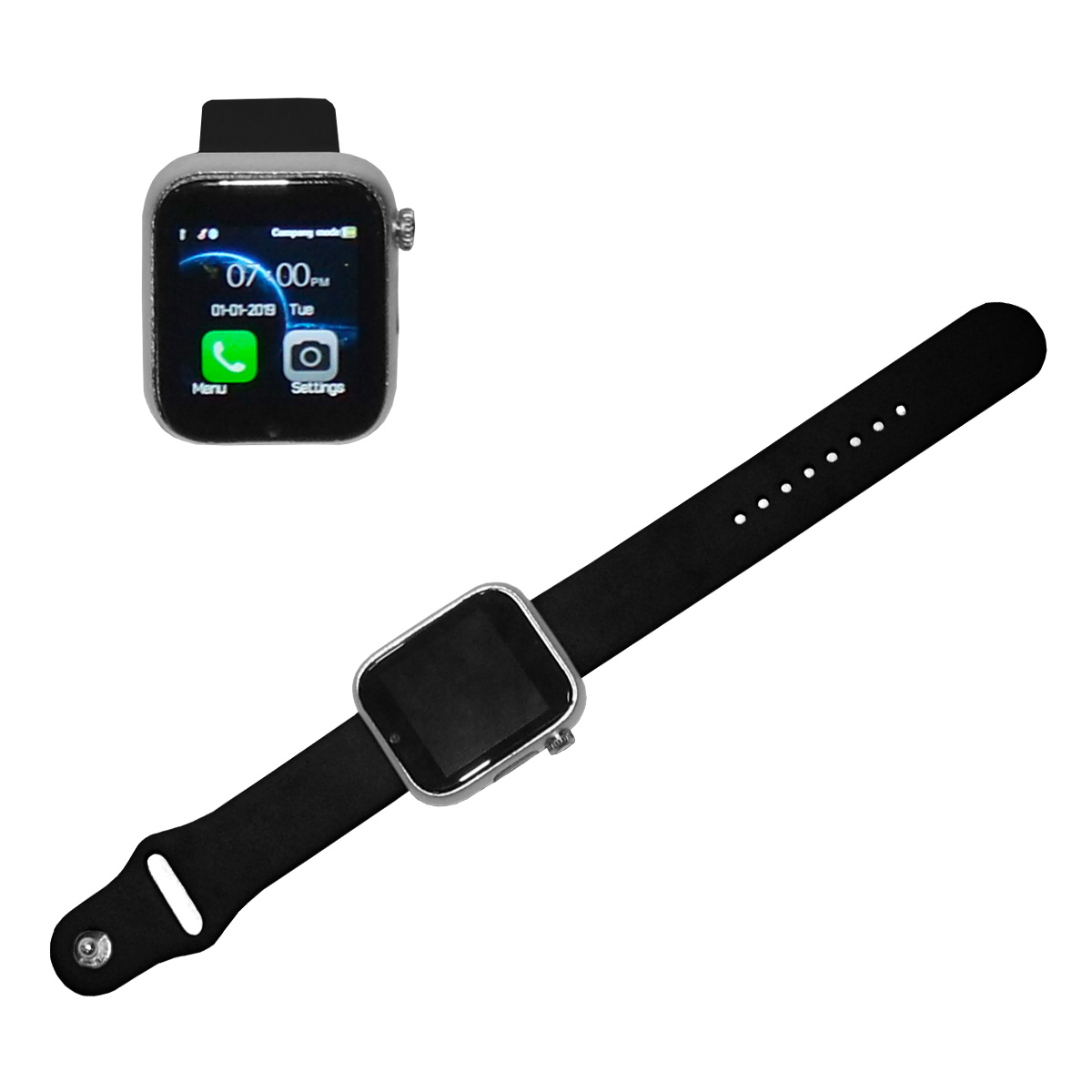 Mobile Smartwatch, made of Silicone strap and Zinc Alloy case material, measuring 11 inches in length with an HD touch control screen size of 1.54 inches 240 by 240 pixels. This android Smartwatch as many functions such as; video recording, pedometer, sleep monitor, sedentary reminder, audio, video player, calendar (synchronizable), Bluetooth dialer, call reminder, Bluetooth call, Bluetooth SMS/IM message notified, and much more. It also records daily activities by step, calories, distance automatically, and predicts the health of the body in advance. It supports SIM cards, and the TF card up to 32GB. It makes a great business gift idea.