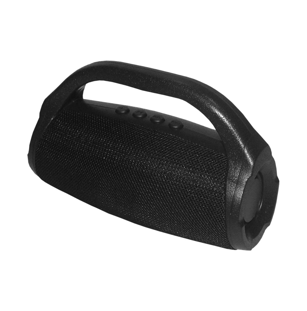 Boombox Portable Speaker. Made of ABS (Plastic) with fabric material finish, measuring 6.65 (W) x 4.33 (H) x 2.95 (D) inches in size. Features carry handle, Micro SD Card slot, FM radio with hands-free calls function. This 3-watt speaker has a high-fidelity sound with a built-in resonance radiator and an imported Bluetooth chip, which can connect to a variety of Bluetooth devices to enjoy music. Great for outdoor activities.