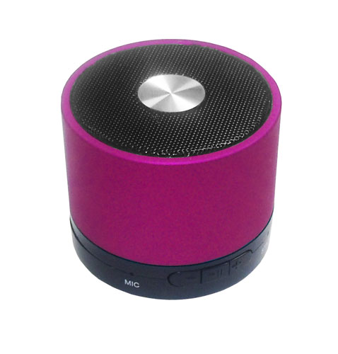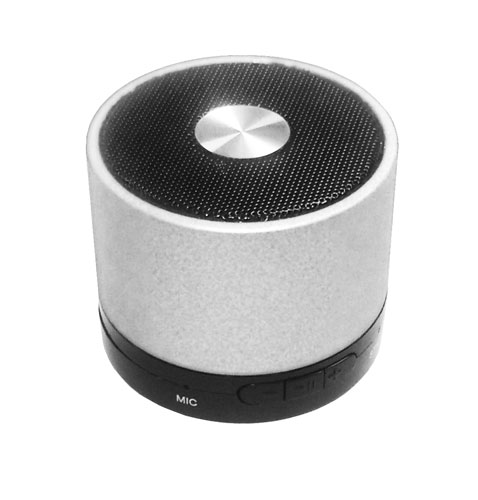 Bluetooth Mini Speaker. Made of Aluminum Metal material and measuring 60 x 56 mm (Dia.×H) in size. Bluetooth 2.1, built-in Lithium-ion battery. Power Supply: Lithium-ion, Computer-USB-in, DC-in. Memory Play: Auto remember the last song & play mode played. Support TF card (MAX 32GB), and all devices.