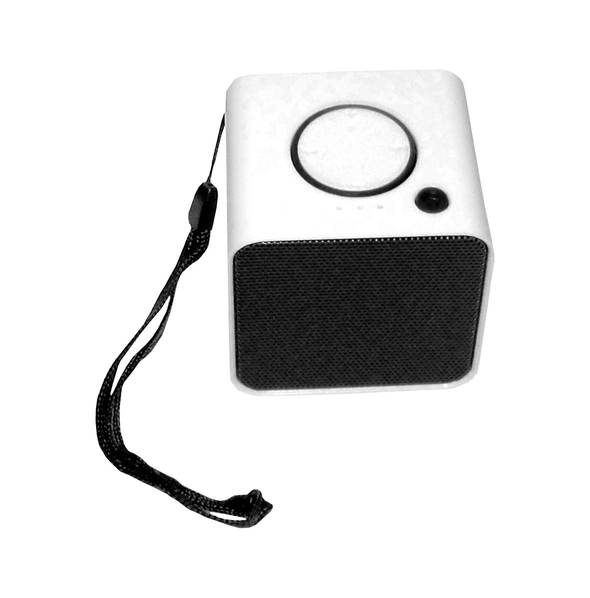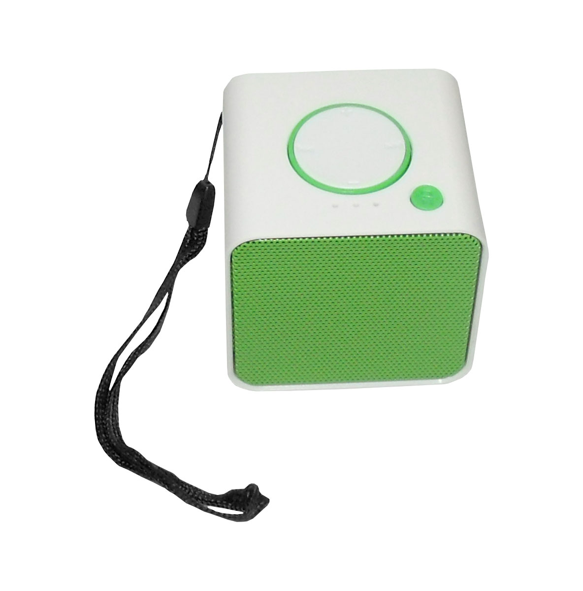 Cube Mini Portable Boombox. Made of Plastic material, measuring 2.36 (W) x 2.36 (H) x 1.96 (D) inches in size. Features Micro SD Card slot, FM radio with a rechargeable lithium-ion battery that lasts up to 5 hours. This 3-watt speaker has built-in imported Bluetooth chip, which can connect to a variety of Bluetooth devices to enjoy music. Great for a business promotional gift idea.