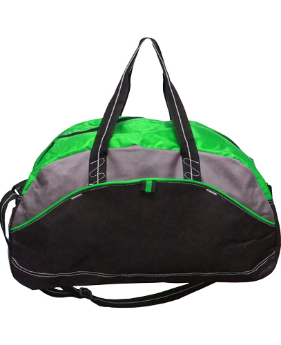 Gym Duffel Bag. Made of 600D Polyester and Dobby Nylon material, measuring 21” W x 12” H x 9” D in size.