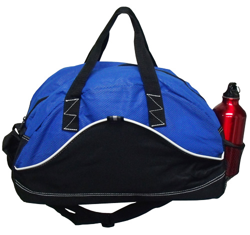 Basic Sports Duffel Bag. Made of 600D Polyester with a non-woven diamond material, measuring 18” W x 10” H x 8” D in size.