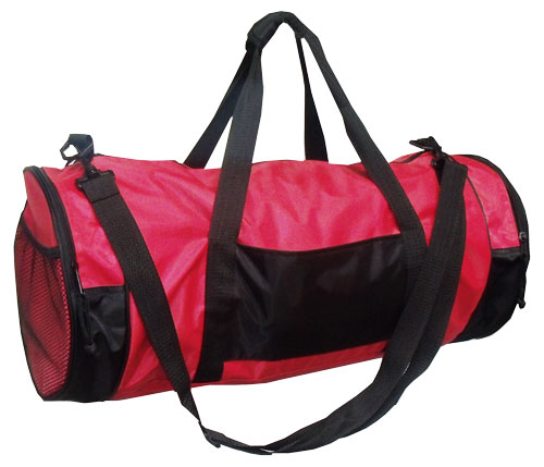 Sports Duffel Bag. Made of 600D Polyester/PVC material, measuring 19” W x 7.5” H in size.