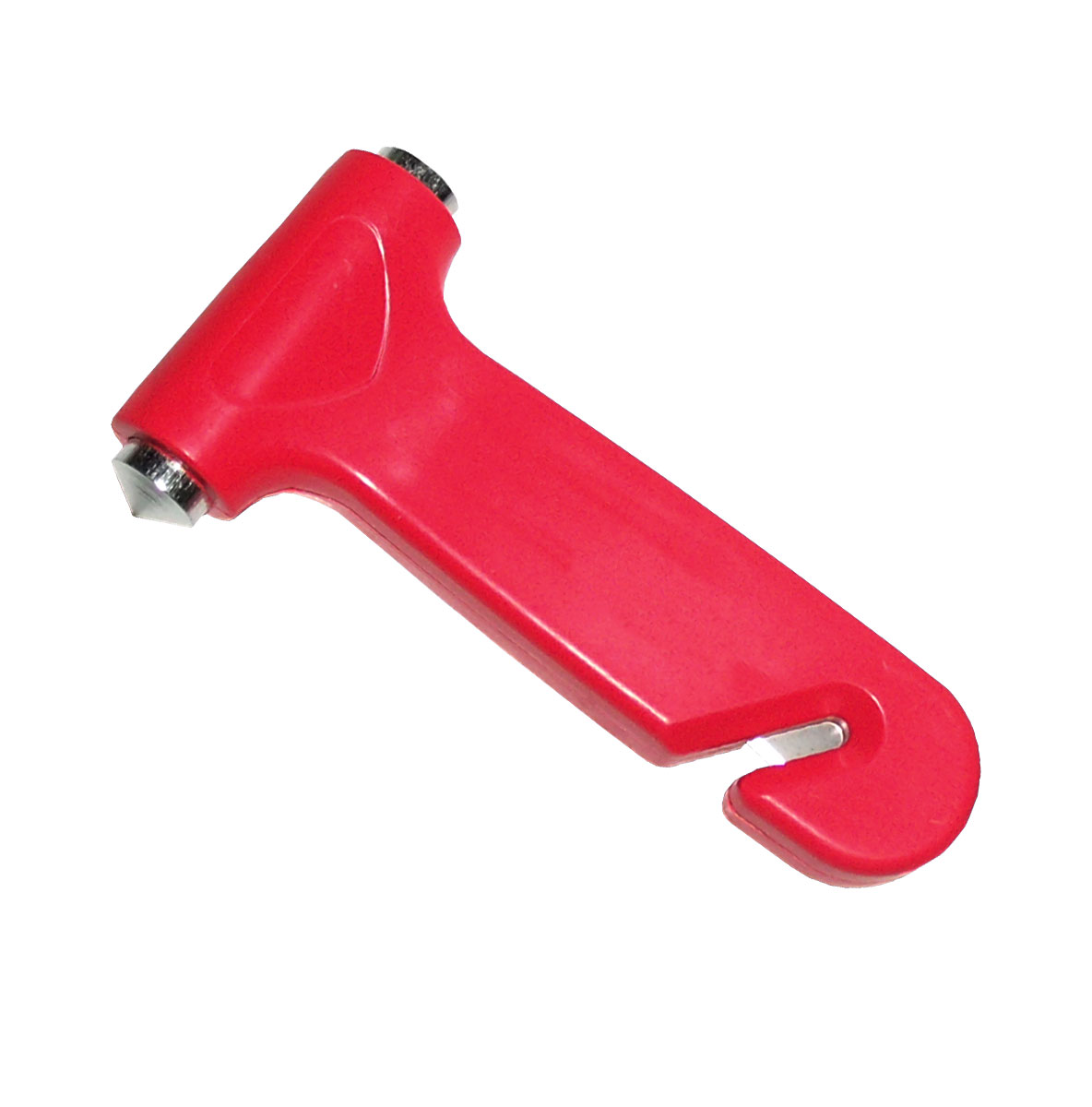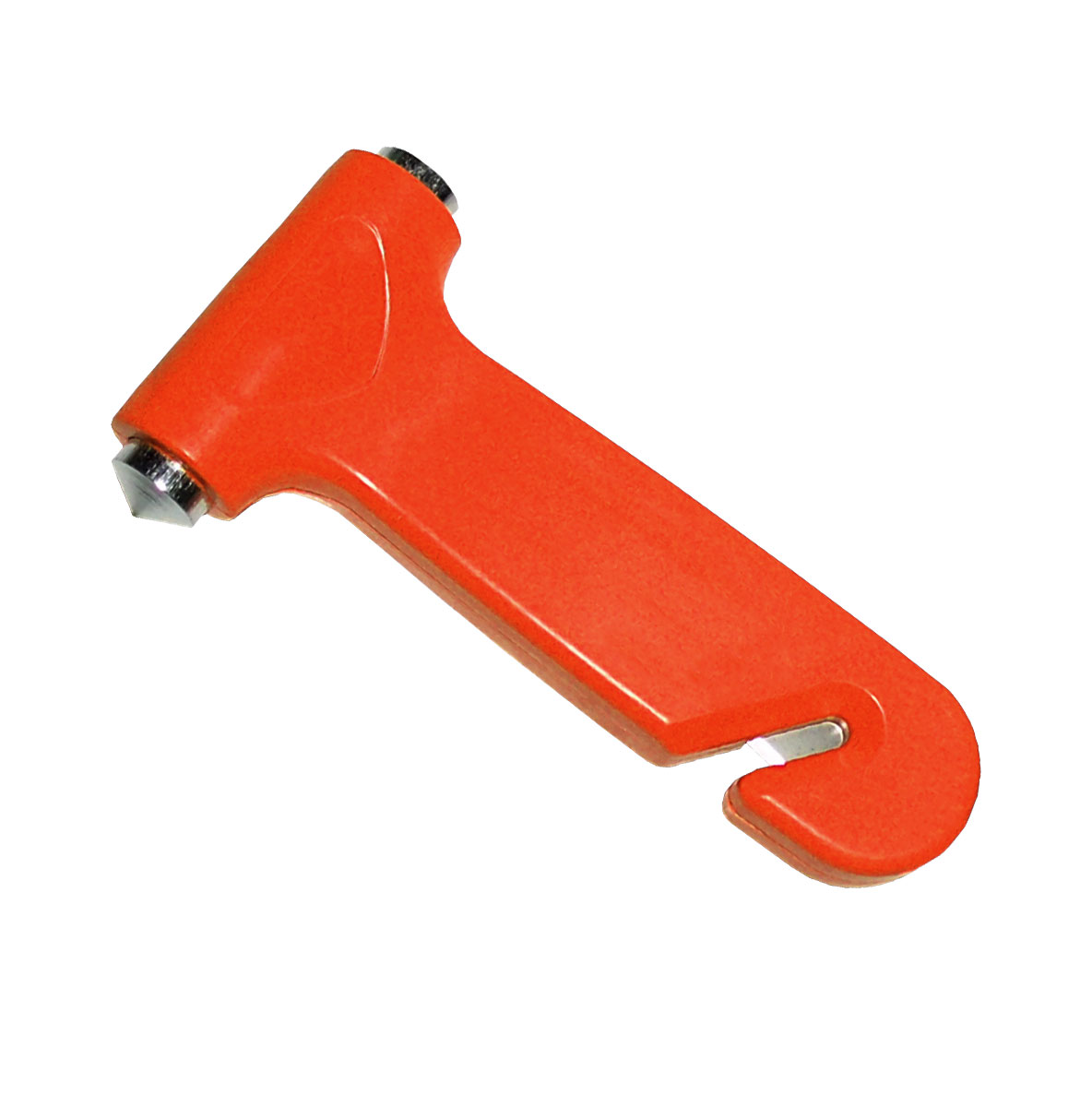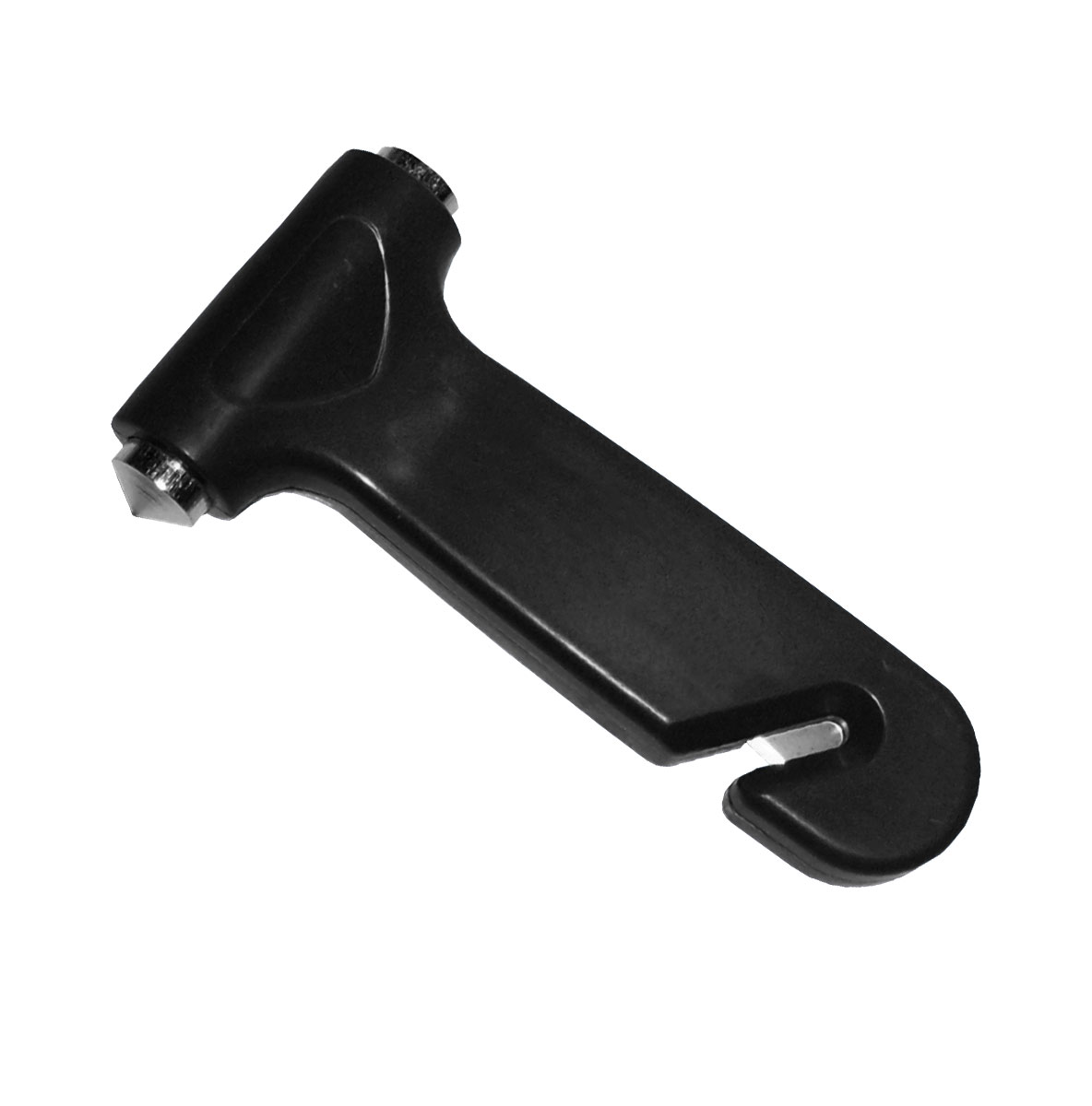 Auto Emergency Safety Hammer. Made of ABS and Stainless Steel material, measuring 5.11 (L) x 2.95 (W) x 0.98 (D) inches in size. This safety hammer has a double-sided head with hardened sharp Stainless Steel points, which helps shatters vehicle windows and cut seat belts in an emergency.