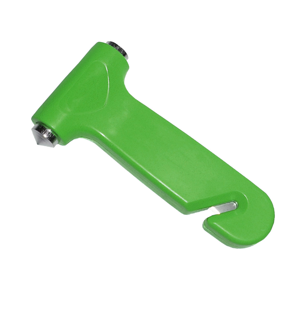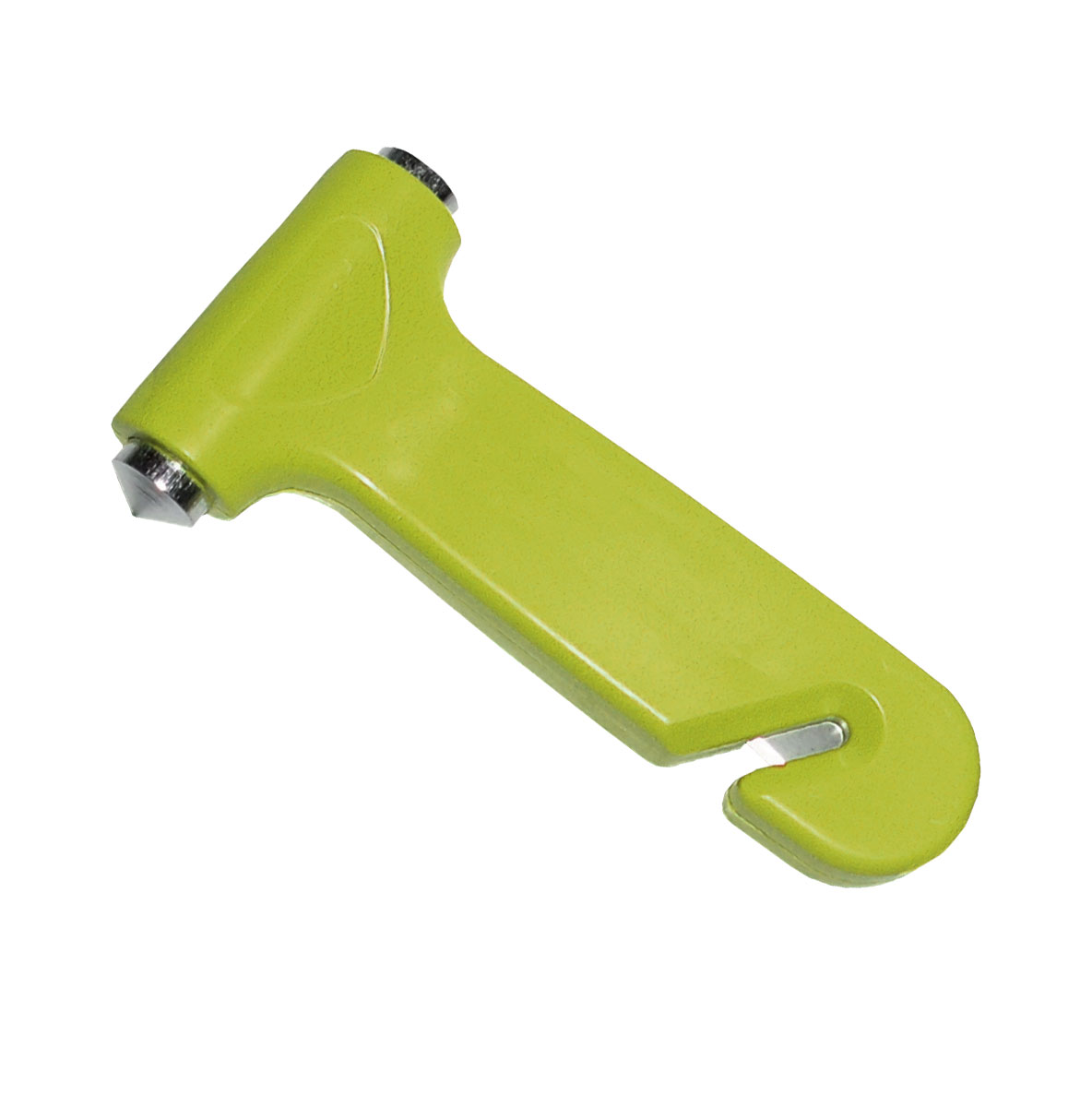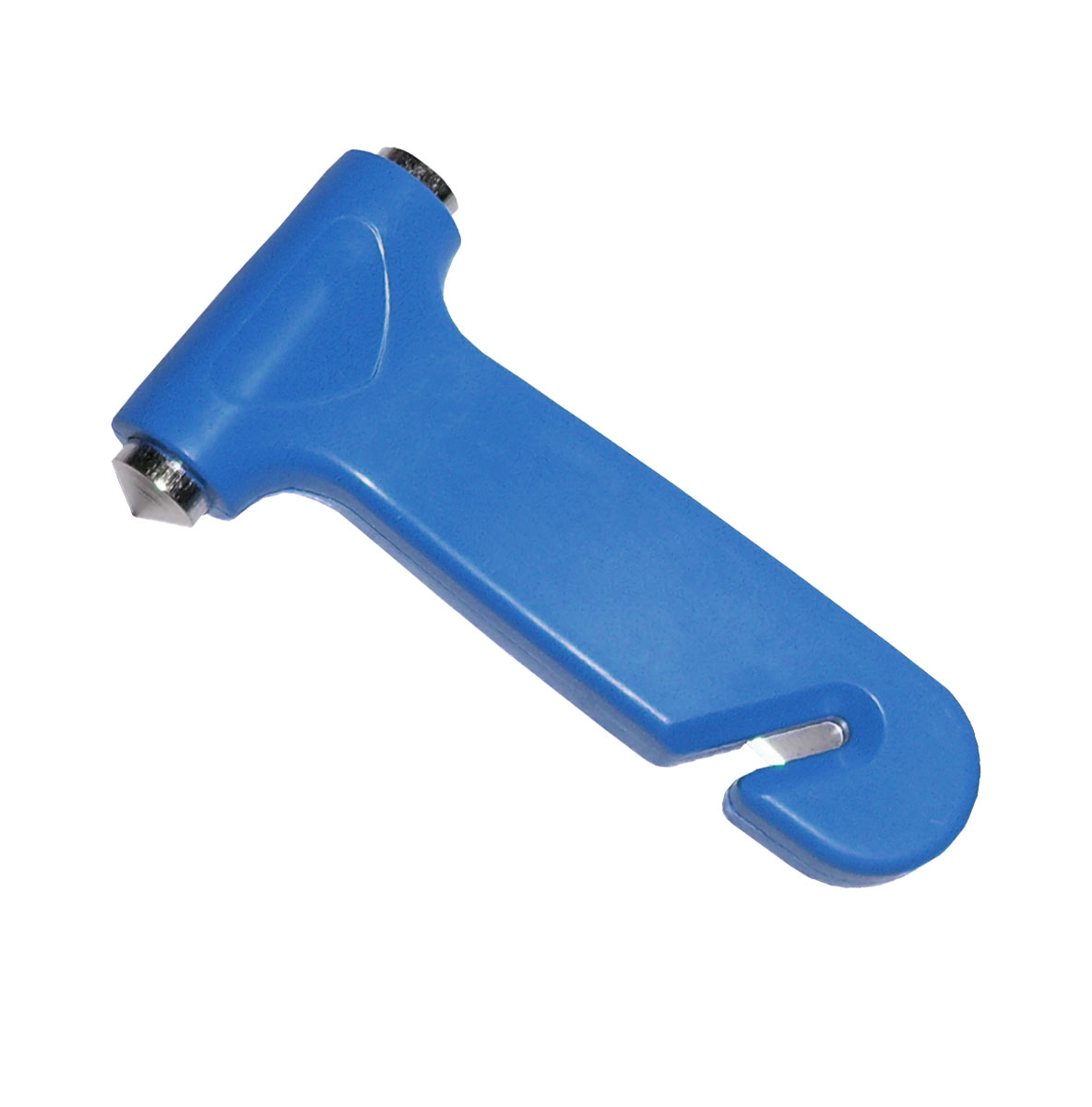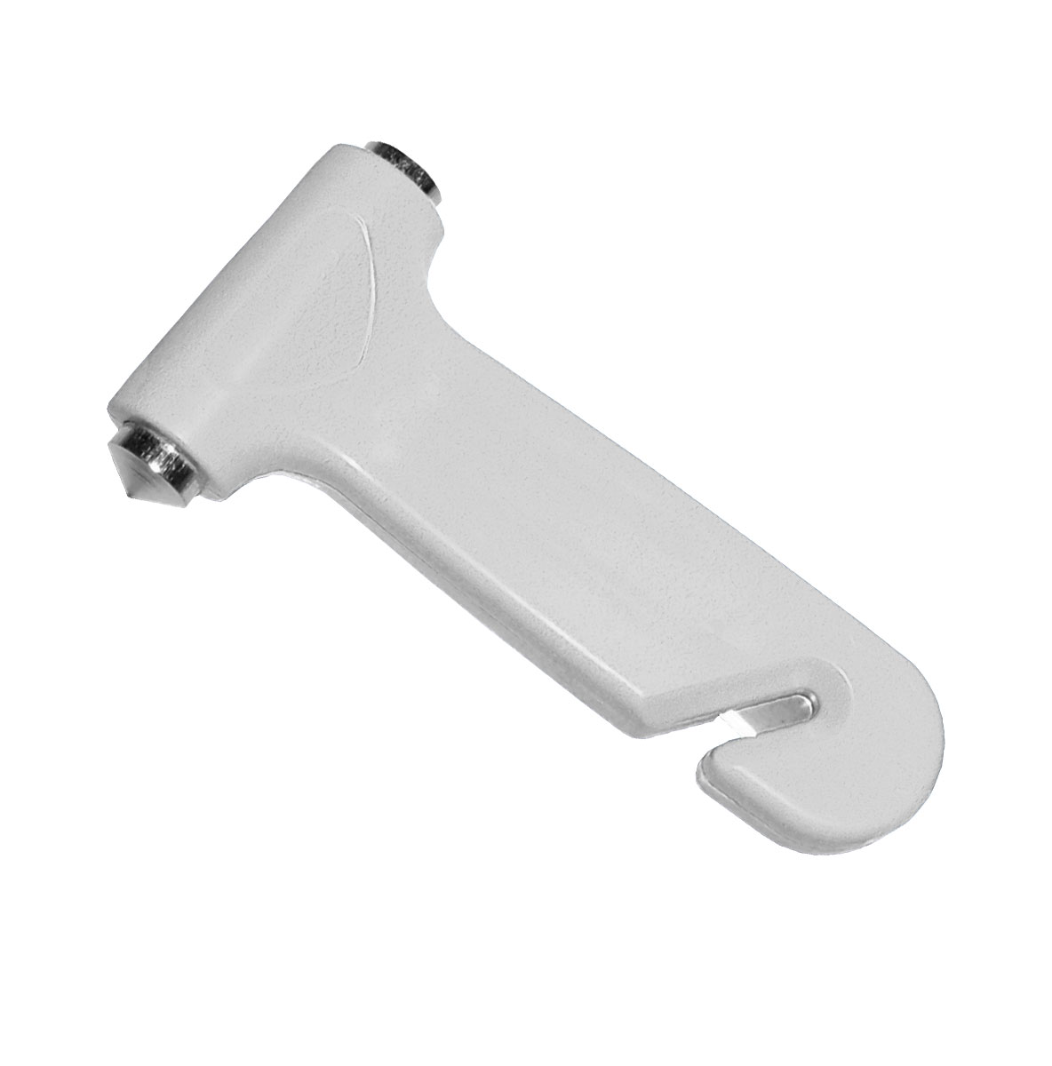 Auto Emergency Safety Hammer. Made of ABS and Stainless Steel material, measuring 5.11 (L) x 2.95 (W) x 0.98 (D) inches in size. This safety hammer has a double-sided head with hardened sharp Stainless Steel points, which helps shatters vehicle windows and cut seat belts in an emergency.