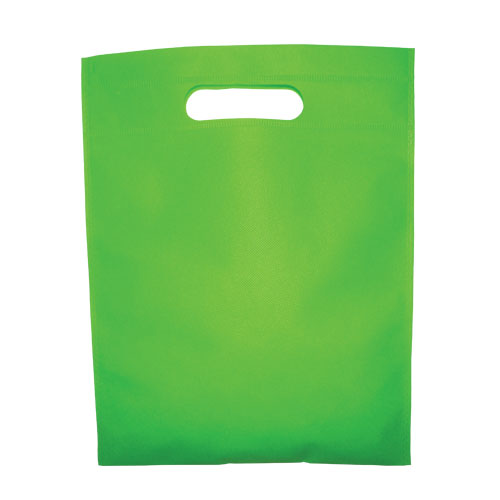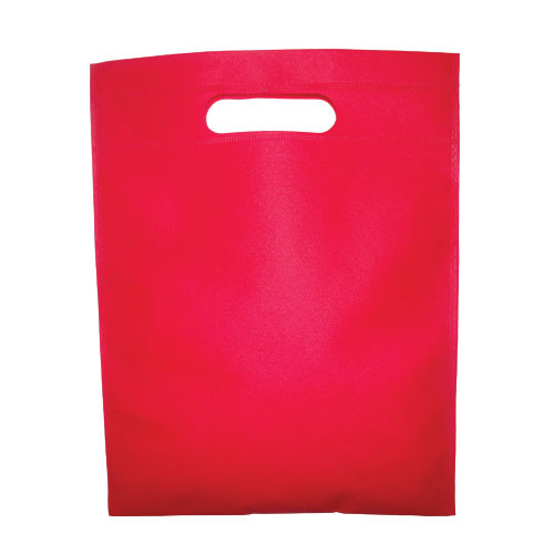 Cut-Out Handle Show Tote. Made with eco-friendly, Non-Woven 65-gram polypropylene material, and measuring 14” W x 16” H in size. It makes a great promotional giveaway for any event.